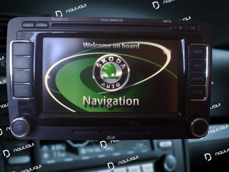 Škoda modellekhez illeszkedő RNS510 egység, tipikus olvasási hibákkal.